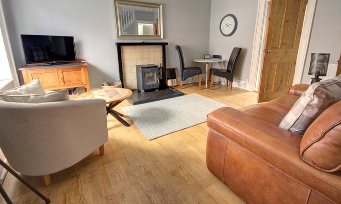 A listed building, Anvil House has a spacious bedroom on the upper floor which features original shutters at windows to the front and rear of the property. On the ground floor the front entrance leads directly into the lounge, with comfortable seating and log burner, the perfect spot to enjoy a wee dram at the end of the day or relax with your favourite show on the ** smart TV. The lounge leads through to the kitchen and bathroom towards the rear of the property.