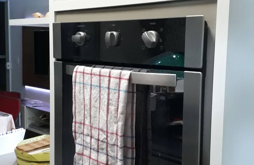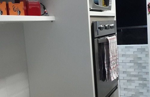 Fully equipped kitchen. It has a microwave, oven, 4-burner triple-burner cooktop, 553L refrigerator, mixer, blender, and general household items.