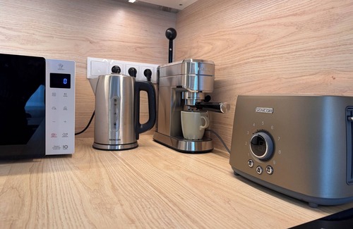 The apartment is fully equipped with all necessary appliances, including a dishwasher, coffee machine, microwave, TV, and much more, ensuring you have everything you need for a comfortable stay.
