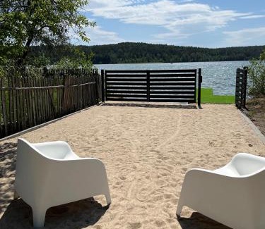 Featuring lake views, Apartament Aleksandra we Wielu z widokiem na jezioro in Wiele features accommodations, a private beach area, pool with a view, a garden, and barbecue facilities. This beachfront property offers access to a balcony and free private parking. Featuring a private entrance, the apartment allows guests their privacy. Featuring a terrace, all units include a seating area, a flat-screen TV, a fully equipped kitchenette, a dining area, and a private bathroom. A fridge, a stovetop, and kitchenware are also available, as well as a kettle. The rooms are equipped with heating facilities. Guests at the apartment will be able to enjoy activities in and around Wiele, like hiking. A children's playground is also available for guests at Apartament Aleksandra we Wielu z widokiem na jezioro. Tuchola Forests is 31 miles from the accommodation, while Bory Tucholskie National Park is 17 miles from the property. Gdańsk Lech Wałęsa Airport is 50 miles away.