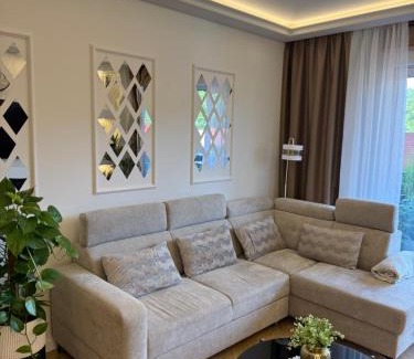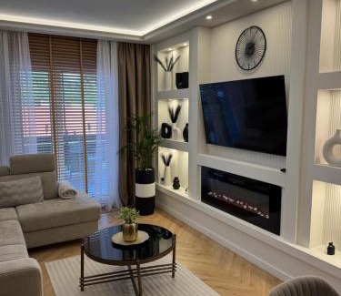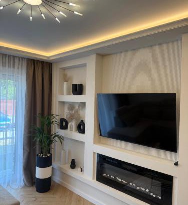 Apartament Anna De Lux z dużym tarasem is located in Zamość, just a 18-minute walk from Grand Market Square and one mile from Zamość Art Gallery. This property offers access to a terrace, free private parking, and free Wifi. The accommodation features an elevator and private check-in and check-out for guests. The apartment consists of 1 bedroom, a living room, a fully equipped kitchen with a dishwasher and a coffee machine, and 1 bathroom with a walk-in shower and a hair dryer. A private entrance leads guests into the apartment, where they can enjoy some wine or champagne and chocolates or cookies. There's also a seating area and a fireplace. Guests are welcome to unwind at the bar or lounge, while a mini-market is also available. Popular points of interest near the apartment include Zamość Synagogue, Zamość Town Hall, and Zamość Cathedral. Lublin Airport is 50 miles from the property.