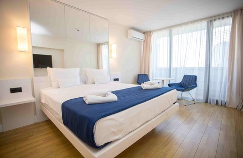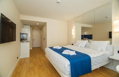 The Aparthotel provides guests with a terrace, city views, a seating area, TV, kitchen with a bridge and a microwave, and a private bathroom with shower and free toiletries. A balcony with mountain, beach and city views.