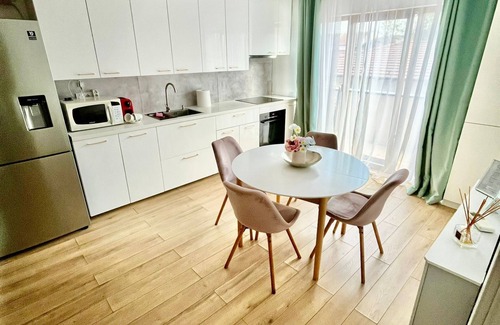 Apartament modern și luminos, situat într-o zonă liniștită, perfect pentru o escapadă relaxantă. Acesta dispune de un dormitor confortabil, baie elegantă și un living open space cu bucătărie complet echipată. Designul atent ales și atmosfera primitoare te vor face să te simți ca acasă. Ideal pentru un sejur relaxant, într-un loc liniștit, dar aproape de toate atracțiile.