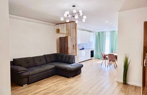 Your home away from home in Florești with 2 bedrooms. This cool apartment features 1 full bed and 1 sofa bed, perfect for a small group of guests. Enjoy the nice amenities like AC, iron, and heating. The bathroom includes a bathtub for a relaxing soak after a day of exploring. Experience the magic of Florești at our apartment.
