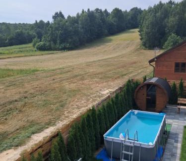 Apartament GUCIO is located in Guciów, just 17 miles from Zamość Synagogue and 18 miles from Zamość Town Hall. This property offers a private pool, free Wifi, and free private parking. Zamość Cathedral is 18 miles from the apartment and Roztocze National Park is a 10-minute walk away. Opening onto a terrace with garden views, the spacious air-conditioned apartment consists of 3 bedrooms. A flat-screen TV is provided. For those times when you'd rather not eat out, you can cook in your kitchen. Grand Market Square is 17 miles from the apartment, while Zamość Art Gallery is 18 miles away. The nearest airport is Lublin Airport, 68 miles from Apartament GUCIO.