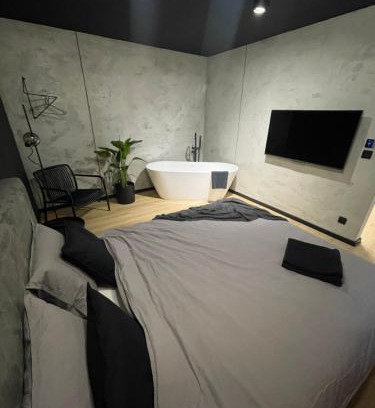 Food & DrinkTea/Coffee maker, Wine/Champagne, Chocolate/Cookies, Bottle of waterBathroomBody soap, Bathtub, Toilet, Toilet paper, Towels, Hairdryer, Private bathroom, ShowerGeneralHypoallergenic, Key access, Heating, Safe, Trash cans, Private entrance, Smoke AlarmKitchenKitchenette, Cleaning products, Dining table, Kitchenware, Stovetop, Wine glasses, Electric kettle, Kitchen, RefrigeratorMedia & TechnologyCable channels, Flat-screen TV, Satellite channels, RadioLiving AreaDining areaBedroomLinensAccessibilityEntire unit located on ground floorBuilding CharacteristicsPrivate apartment in buildingRoom AmenitiesClothes rack, Non-feather pillow, Socket near the bedViewQuiet street view |