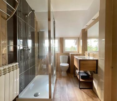 Apartament Karkonoska offers accommodations in Przesieka, 7.7 miles from Wang Church and 11 miles from Western City. This property offers access to a balcony and free private parking. Guests can enjoy mountain views. At the apartment complex, units include a wardrobe, a flat-screen TV, a private bathroom, bed linen, and towels. Rooms include a kettle, while selected rooms also boast a fully equipped kitchen with a dishwasher. At the apartment complex, each unit comes with a seating area. Dinopark is 12 miles from the apartment, while Szklarska Poreba Bus Station is 12 miles from the property. Copernicus Wrocław Airport is 71 miles away.