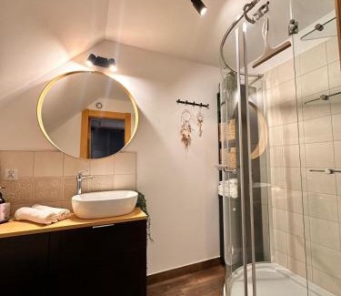Apartament nad Jeziorem Rybical 1 is a recently renovated apartment in Ryn where guests can make the most of the private beach area and garden. This beachfront property offers access to a balcony, free private parking, and free Wifi. Outdoor seating is also available at the apartment. Featuring a terrace with lake views, this apartment also includes a flat-screen TV, a well-equipped kitchen with a dishwasher, an oven, and a fridge, as well as 1 bathroom with a shower and a hair dryer. This apartment is allergy-free and non-smoking. Guests at Apartament nad Jeziorem Rybical 1 will be able to enjoy activities in and around Ryn, like fishing, hiking, and walking tours. Bike tours can be enjoyed nearby. Święta Lipka Sanctuary is 19 miles from the accommodation, while Sailors' Village is 11 miles from the property. Olsztyn-Mazury Airport is 50 miles away.