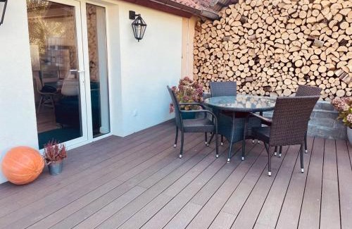 Food & DrinkTea/Coffee makerBathroomTowels, Hairdryer, Bathtub or shower, Toilet paperKitchenOven, Electric kettle, Kitchenette, Kitchen, Wine glasses, Dishwasher, Kitchenware, Dining table, Refrigerator, Stovetop, Coffee machineLiving AreaSitting area, FireplaceGeneralPrivate entrance, Trash cans, Mosquito net, HeatingMedia & TechnologyFlat-screen TVViewViewOutdoorsBarbecue, Terrace, Outdoor dining area, Outdoor furnitureBedroomLinensRoom AmenitiesClothes rack, Sofa bed |