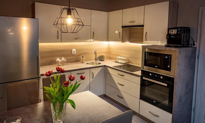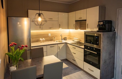 Apartament Nad Stawami offers accommodations in Sanok, 1.9 miles from Sanok Castle and 22 miles from The Solina Dam. The apartment, set in a building dating from 2019, is 1.8 miles from Skansen Sanok and 1.9 miles from Zdzislaw Beksinski Gallery. The property provides a children's playground and parking on-site. With free Wifi, this 1-bedroom apartment offers a satellite flat-screen TV, a washing machine, and a fully equipped kitchen with a dishwasher and oven. The air-conditioned unit at the property features a walk-in shower and a dressing room. For added privacy, the accommodation features a private entrance. A mini-market is available at the apartment. Guests at the apartment can enjoy skiing nearby, or make the most of the garden. Museum of Oil and Gas Industry Foundation is 27 miles from Apartament Nad Stawami, while BWA Art Gallery is 28 miles away. The nearest airport is Rzeszów-Jasionka, 53 miles from the accommodation, and the property offers a paid airport shuttle service.