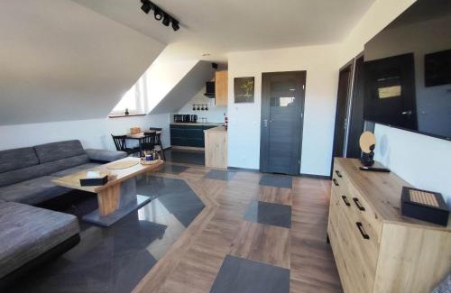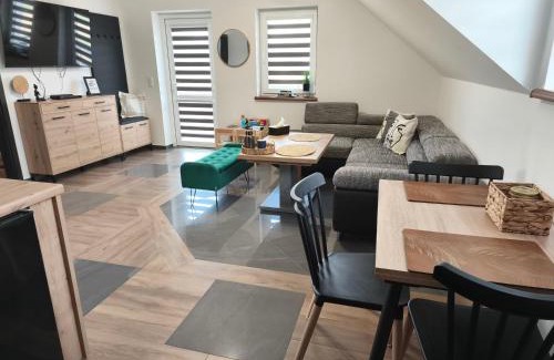 Featuring a garden, Apartament Widokówka offers accommodations in Hoczew. This property offers access to a balcony, free private parking, and free Wifi. Zdzislaw Beksinski Gallery is 15 miles from the apartment and Sanok Castle is 15 miles away. Offering a terrace and mountain views, the apartment includes 2 bedrooms, a living room, flat-screen TV, an equipped kitchen, and 1 bathroom with a shower. Towels and bed linen are featured in the apartment. The property has an outdoor dining area. Guests can make the most of the warm weather with the property's barbecue facilities. Skansen Sanok is 15 miles from the apartment, while The Solina Dam is 10 miles away. Rzeszów-Jasionka Airport is 65 miles from the property.