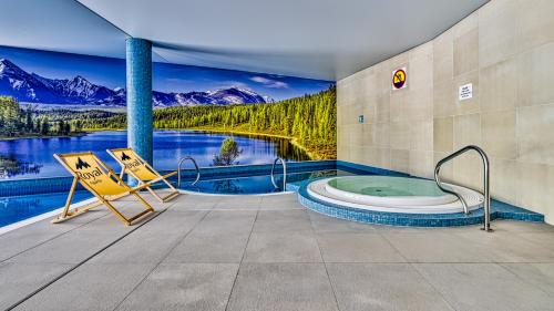 A 7-minute walk from Szklarska Poreba Bus Station in Szklarska Poręba, Apartament widokowy "ROCCA VIEW" STONE HILL RESORT z basenem i saunami provides accommodations with access to a hot tub. This property offers access to a balcony, free private parking, and free Wifi. The apartment offers an indoor pool, sauna, and an elevator. This apartment includes 1 bedroom, a living room and a flat-screen TV, an equipped kitchenette with a dining area, and 1 bathroom with a shower and a washing machine. For added privacy, the accommodation has a private entrance and is protected by full-day security. Guests at the apartment can enjoy a continental breakfast. For guests with children, Apartament widokowy "ROCCA VIEW" STONE HILL RESORT z basenem i saunami features outdoor play equipment. Skiing is possible within the area and the accommodation offers ski storage space. Izerska Railway is a 16-minute walk from Apartament widokowy "ROCCA VIEW" STONE HILL RESORT z basenem i saunami, while Dinopark is 2.1 miles from the property. Copernicus Wrocław Airport is 75 miles away.