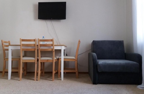 Food & DrinkTea/Coffee maker, Bottle of waterBathroomToilet, Walk-in shower, Shower, Private bathroom, Bathtub or shower, Toilet paper, Towels, Body soapMedia & TechnologyFlat-screen TV, Cable channels, TVKitchenOven, Wine glasses, Dining table, Refrigerator, Cleaning products, Kitchenette, Stovetop, Kitchen, Kitchenware, Electric kettleLiving AreaDining area, Desk, SofaGeneralKey card access, Fan, Tile/Marble floor, Carpeted, Key access, Heating, Trash cansBedroomWardrobe or closet, Linens, Extra long beds (> 6.5 ft)ViewView, Inner courtyard view, City viewAccessibilityUpper floors accessible by stairs onlyBuilding CharacteristicsPrivate apartment in building, Semi-detachedRoom AmenitiesSocket near the bed, Clothes rack, Non-feather pillow, Sofa bed |