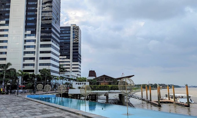 Ademas de su hermosa vista de 180 grados al majestuoso Río Guayas y al Puerto Santa Ana.