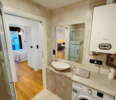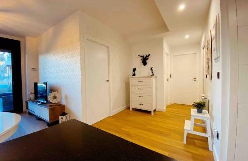 A 4-minute walk from Praia de Canelinas in Portonovo, Apartamento en Edificio Nuevo con Piscina provides accommodations with access to a solarium and open-air bath. This property offers a private pool, free Wifi, and free private parking. The accommodation features an elevator, a mini-market, and organizing tours for guests. Featuring a terrace and sea views, the spacious apartment includes 2 bedrooms, a living room, flat-screen TV, an equipped kitchen, and 2 bathrooms with a walk-in shower and a bidet. Towels and bed linen are available in the apartment. The property has an outdoor dining area. A children's playground is also available at the apartment, while guests can also relax in the garden. Estación Maritima is 30 miles from Apartamento en Edificio Nuevo con Piscina, while Pontevedra Railway Station is 15 miles from the property. Vigo Airport is 32 miles away.
