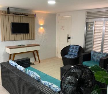 Offering a garden and barbecue facilities, Apartamento Praia Enseada Guarujá Wilma - próximo da praia - com ar condicionado e vaga para carro in Guarujá is close to Enseada Beach and Acqua Mundo Aquarium. This beachfront property offers access to free Wifi and free private parking. Iatch Club of Santos is 4 miles from the apartment and Guaruja Golf Club is 4.1 miles away. This apartment includes 3 bedrooms, a living room and a flat-screen TV, an equipped kitchen with a dining area, and 2 bathrooms with a shower and a washing machine. For added privacy, the accommodation features a private entrance. Guaruja Bus Station is 2.9 miles from the apartment, while Restingas of Bertioga Estadual Park is 27 miles from the property. Sao Paulo/Congonhas Airport is 55 miles away.