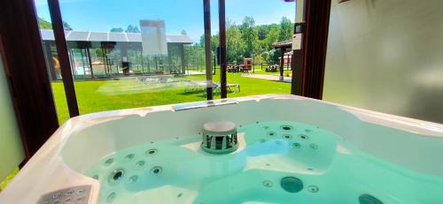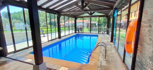 Offering river views, Apartamentos El Castañeu in Corao features accommodations, an indoor pool, an open-air bath, free bikes, a garden, and barbecue facilities. This property offers a pool with a view and free private parking. The apartment offers pool views, a sun terrace, a 24-hour front desk, and free Wifi is available throughout the property. The apartment provides guests with a patio, mountain views, a seating area, a flat-screen TV, a fully equipped kitchen with a microwave and a toaster, and a private bathroom with hot tub and a hair dryer. A fridge, a stovetop, and kitchenware are also featured, as well as a coffee machine. At the apartment complex, the units come with bed linen and towels. For guests with children, Apartamentos El Castañeu provides outdoor play equipment. If you like to discover the area, cycling, fishing and hiking are possible in the surroundings and the accommodation can arrange a car rental service. The Lakes of Covadonga is 13 miles from Apartamentos El Castañeu, while La Cueva de Tito Bustillo is 19 miles away. The nearest airport is Asturias Airport, 71 miles from the apartment.