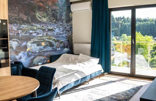 Apartamenty Lesko 36 offers accommodations in Lesko, 10 miles from Zdzislaw Beksinski Gallery and 10 miles from Sanok Castle. The air-conditioned accommodation is 10 miles from Skansen Sanok, and guests can benefit from on-site private parking and complimentary Wifi. The accommodation provides an elevator and private check-in and check-out for guests. Providing a balcony and mountain views, the apartment includes 1 bedroom, a living room, satellite flat-screen TV, an equipped kitchenette, and 1 bathroom with a shower. Towels and bed linen are provided in the apartment. For added privacy, the accommodation features a private entrance. The Solina Dam is 11 miles from the apartment, while Bieszczady Forest Railway is 25 miles away. The nearest airport is Rzeszów-Jasionka Airport, 61 miles from Apartamenty Lesko 36.