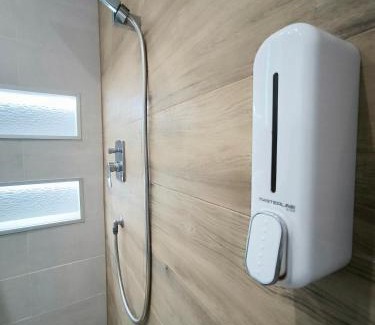 Food & DrinkTea/Coffee maker, Bottle of waterBathroomBody soap, Toilet paper, Toilet, Shower, Towels, Walk-in shower, Free toiletries, Bathtub or shower, Private bathroom, HairdryerMedia & TechnologyCable channels, Satellite channels, TV, Streaming service (like Netflix), Flat-screen TVGeneralTrash cans, Ironing facilities, Hardwood or parquet floors, Air conditioning, Iron, Key access, Hypoallergenic, HeatingKitchenDining table, Coffee machine, Stovetop, Toaster, Cleaning products, Dryer, Kitchenette, Microwave, Kitchen, Washing machine, Refrigerator, Wine glasses, Kitchenware, Dishwasher, Electric kettleLiving AreaSitting area, Sofa, Dining areaBedroomLinens, Wardrobe or closet, Childrens' cribsViewQuiet street view, Garden viewAccessibilityEntire unit located on ground floorBuilding CharacteristicsPrivate apartment in building, Semi-detachedRoom AmenitiesSocket near the bed, Sofa bed, Clothes rack, Hypoallergenic pillowEntertainment & Family ServicesBooks, DVDs or music for children, Board games/puzzles |
