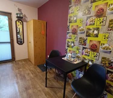 Apartamenty z ogrodem nr 2 typu studio is located in Mrągowo, just 13 miles from Święta Lipka Sanctuary and 1.2 miles from Mrongoville. Private parking is available on site at this recently renovated property. The apartment offers an outdoor fireplace and a 24-hour front desk. With free Wifi, this apartment provides a flat-screen TV, and a fully equipped kitchen with a microwave and fridge. Towels and bed linen are provided in the apartment. The property has an outdoor dining area. There is a garden with a barbecue at this property, and guests can go hiking nearby. Townhall of Mragowo is 1.8 miles from the apartment, while Tropikana Aqua Park is 16 miles away. The nearest airport is Olsztyn-Mazury, 40 miles from Apartamenty z ogrodem nr 2 typu studio, and the property offers a paid airport shuttle service.