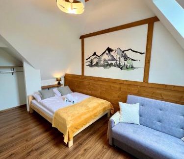 Featuring a garden, Apartamenty Zaliński Agroturystyka provides accommodations in Bańska Wyżna. This property offers access to a patio, free private parking, and free Wifi. Gubalowka Mountain Train Station is 6.9 miles from the apartment and Zakopane Railway Station is 9.3 miles away. Providing a balcony and mountain views, the apartment includes 2 bedrooms, a living room, satellite flat-screen TV, an equipped kitchenette, and 2 bathrooms with a bath. Towels and bed linen are provided in the apartment. The property has an outdoor dining area. Zakopane Aqua Park is 10 miles from the apartment, while Tatra National Park is 11 miles away.