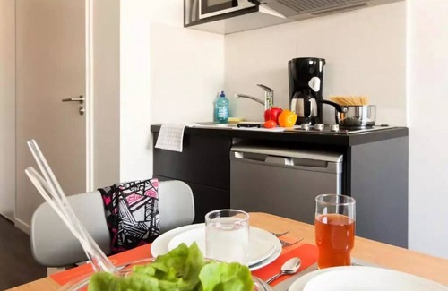 Your 110 apartments ranging from studios for 2 people to 2-room apartments for 4 people, all carefully decorated and furnished have a fully equipped kitchen. Access to the laundry is available to you. The aparthotel has paid public parking nearby.