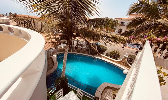 Facing the beachfront, ApartHotel NhaTerra offers 3-star accommodations in Santa Maria and features a garden, shared lounge and restaurant. Featuring a bar, the hotel is close to several noted attractions, around a few steps from Praia de Santa Maria, a 3-minute walk from Nazarene Church and 500 yards from Funana Casa da Cultura. The hotel provides an indoor pool and a 24-hour front desk. The hotel offers a buffet or continental breakfast. Parish of Our Lady of Sorrows is a 2-minute walk from ApartHotel NhaTerra, while Viveiro, Botanical Garden & Zoo di Terra is 2.9 miles away. Amílcar Cabral International Airport is 11 miles from the property.