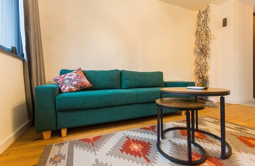 This tastefully adorned studio apartment features a well-equipped kitchen and a spacious layout. The apartment is designed to accommodate up to four guests comfortably, with a sofa and two pull-out armchairs providing ample space for relaxation.