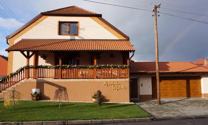 Apartmán Štěpánka in Ratíškovice provides accommodations with a garden, a bar, and barbecue facilities. This apartment provides free private parking and a 24-hour front desk. This 3-star apartment offers private entrance. All units feature air conditioning and a cable flat-screen TV. All rooms are equipped with a coffee machine, a private bathroom, and free Wifi, while selected rooms are fitted with a terrace and some have garden views. At the apartment complex, all units are equipped with bed linen and towels. Guests at the apartment will be able to enjoy activities in and around Ratíškovice, like hiking. Guests can also warm up near the outdoor fireplace after a day of cycling. Chateau Valtice is 25 miles from Apartmán Štěpánka, while Lednice Chateau is 25 miles away. Brno-Turany Airport is 35 miles from the property.
