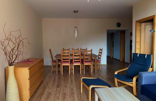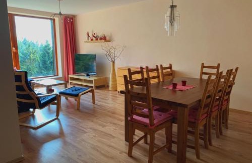 Providing a garden, Apartmán Švadlenka features accommodations in Rokytnice nad Jizerou. Both free Wifi and parking on-site are available at the apartment free of charge. The apartment has ski storage space. This apartment includes 2 bedrooms, a living room and a flat-screen TV, an equipped kitchen with a dining area, and 1 bathroom with a shower and a washing machine. Towels and bed linen are featured in the apartment. This apartment is allergy-free and non-smoking. There is an on-site bar. For guests with children, Apartmán Švadlenka provides outdoor play equipment. Skiing and cycling can be enjoyed nearby, while a ski equipment rental service, ski-to-door access and a ski pass sales point, are also available on-site. Szklarki Waterfall is 19 miles from the accommodation, while Kamienczyka Waterfall is 19 miles away. Pardubice Airport is 67 miles from the property.