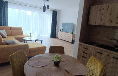 Apartmán A-103 Brezovina offers accommodations in Oravské Veselé, 20 miles from Orava Castle and 19 miles from Pilsko Hill. This property offers access to a balcony, free private parking, and free Wifi. The property offers bike rental and features a garden and picnic area. Featuring a terrace and mountain views, the spacious apartment includes 1 bedroom, a living room, flat-screen TV, an equipped kitchenette, and 1 bathroom with a hot tub and a shower. Guests can take in the views of the garden from the patio, which also has outdoor furniture. Additional in-room amenities include wine or champagne. There is an on-site restaurant, coffee shop, and bar. For guests with children, the apartment features outdoor play equipment. Poprad-Tatry Airport is 83 miles from the property.