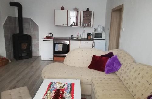 Apartmán Petra is located in Kovářská, just 10 miles from Fichtelberg and 26 miles from Hot Spring. With pool views, this accommodation features a balcony. In addition to free Wifi, the property also provides an outdoor fireplace as well as a sauna. Providing a terrace and mountain views, the apartment includes 1 bedroom, a living room, flat-screen TV, an equipped kitchen, and 1 bathroom with a hot tub and a shower. Guests can enjoy an ambient stay in their soundproof room with parquet floors and a fireplace. This apartment is allergy-free and non-smoking. A mini-market is available at the apartment. For guests with children, the apartment offers outdoor play equipment and a baby safety gate. Guests can swim in the outdoor swimming pool, go skiing or cycling, relax in the garden, and use the barbecue facilities. Market Colonnade is 26 miles from Apartmán Petra, while Mill Colonnade is 26 miles away. Karlovy Vary International Airport is 30 miles from the property.