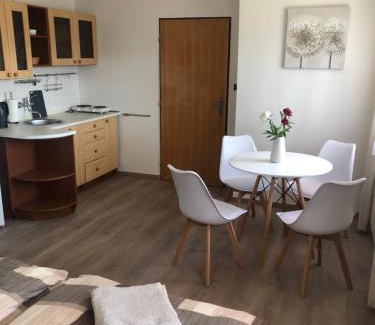 A recently renovated apartment, Apartmán PodFaustinkou offers accommodations in Sušice. Both free Wifi and parking on-site are accessible at the apartment free of charge. Outdoor seating is also available at Apartmán PodFaustinkou. Featuring city views, this apartment also includes a satellite flat-screen TV, a well-equipped kitchenette with a microwave, a fridge, and a stovetop, as well as 1 bathroom with a shower and a hair dryer. For added privacy, the accommodation features a private entrance. Guests can relax in the garden at the property. Ceske Budejovice Airport is 61 miles from the property.