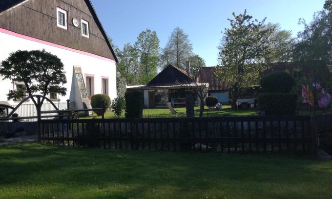 Apartmán ve mlejně offers accommodations in Nová Bystřice, 14 miles from Heidenreichstein Castle and 25 miles from Bus Station Telč. 25 miles from Telč Historic Center and 25 miles from Chateau Telč, the property provides a garden and a shared lounge. There's a sun terrace and guests can use free Wifi and free private parking. The apartment consists of 3 bedrooms, a living room, a fully equipped kitchen with a dishwasher and a kettle, and 1 bathroom with a bath and slippers. Towels and bed linen are offered in the apartment. This apartment is non-smoking and soundproof. There is an on-site restaurant, but if you'd prefer to cook your own meal you can make use of the barbecue facilities and eat in the private dining area. For guests with children, the apartment features both an indoor and outdoor play area. The apartment also comes with outdoor fireplace and a picnic area for a day outdoors. Train Station Telč is 25 miles from apartmán ve mlejně. Ceske Budejovice Airport is 40 miles from the property.