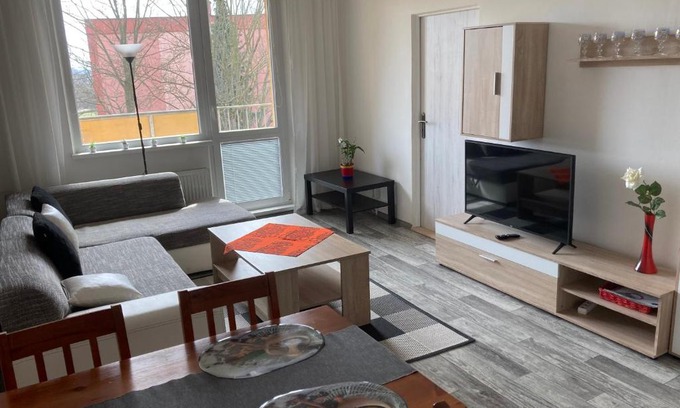 Apartmán ve Velkých Losinách is located in Velké Losiny, just a 3-minute walk from Museum of Paper Velké Losiny and 16 miles from Praděd. The property features a children's playground and parking on-site. Featuring a balcony and quiet street views, the apartment includes 1 bedroom, a living room, flat-screen TV, an equipped kitchenette, and 1 bathroom with a shower. Towels and bed linen are available in the apartment. The accommodation is non-smoking. Guests at the apartment can enjoy tennis on-site, or hiking in the surrounding area. Bouzov Castle is 29 miles from Apartmán ve Velkých Losinách, while Museum of Olomouc Cheese is 24 miles from the property. Pardubice Airport is 76 miles away.