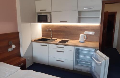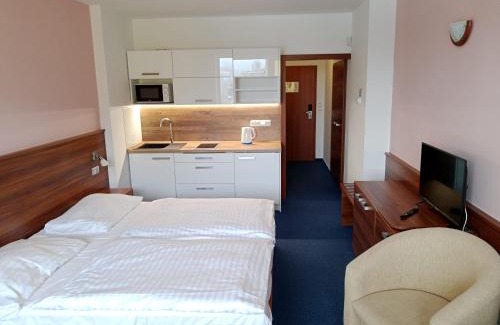 Apartmán Wellness hotel Frymburk is located in Frymburk, just 16 miles from Castle Český Krumlov and 30 miles from Přemysl Otakar II Square. There's a water park on-site, and guests can enjoy the on-site restaurant. Private parking can be arranged at an extra charge. This 1-bedroom apartment comes with a seating area, a flat-screen TV, and a fully equipped kitchen with a microwave. Towels and bed linen are offered in the apartment. For added privacy, the accommodation features a private entrance. Guests can enjoy the indoor pool at the apartment. Lipno Dam is 6 miles from Apartmán Wellness hotel Frymburk, while Main Square in Český Krumlov is 14 miles from the property. Ceske Budejovice Airport is 30 miles away.