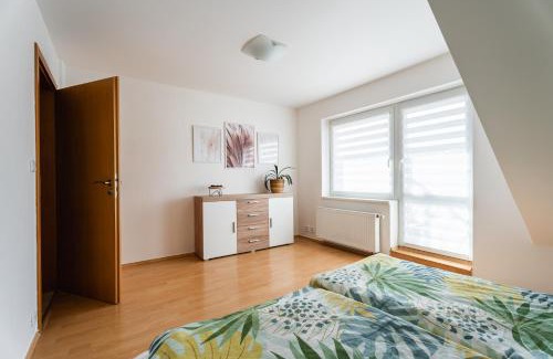 A recently renovated apartment, Apartmány Frýda offers accommodations in Luhačovice. Both free Wifi and parking on-site are accessible at the apartment free of charge. Outdoor seating is also available at Apartmány Frýda. Featuring a terrace and garden views, the spacious apartment includes 3 bedrooms, a living room, flat-screen TV, an equipped kitchen, and 1 bathroom with a bidet and an a bath or shower. Towels and bed linen are available in the apartment. This apartment is allergy-free and non-smoking. For guests with children, the accommodation features an indoor play area. Guests at Apartmány Frýda can enjoy skiing and cycling nearby, or make the most of the garden.