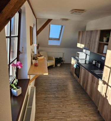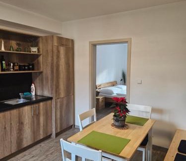 Apartmány Karolína - Kašperské Hory offers accommodations in Kašperské Hory. There's a private entrance at the apartment for the convenience of those who stay. Outdoor seating is also available at the apartment. Featuring free Wifi, the units have a washing machine and a flat-screen TV with streaming services. Rooms are fitted with a kettle and a private bathroom with a shower and a hair dryer, while some rooms also feature a fully equipped kitchen. At the apartment complex, units are fitted with bed linen and towels. Guests at Apartmány Karolína - Kašperské Hory can enjoy skiing and cycling nearby, or make the most of the garden. The nearest airport is Ceske Budejovice Airport, 51 miles from the accommodation.