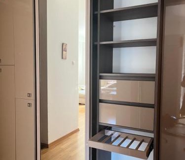 BathroomTowels, Bathtub, Bathtub or shower, Hairdryer, Toilet paperGeneralHardwood or parquet floors, Heating, Air conditioning, Iron, Carbon monoxide detector, Soundproof, SafeMedia & TechnologyTV, Flat-screen TVKitchenElectric kettle, Wine glasses, Refrigerator, Kitchenette, Washing machine, Dryer, Stovetop, Dining table, Kitchen, Oven, Cleaning products, Dishwasher, ToasterOutdoorsBalcony, Outdoor furnitureBedroomLinens, Wardrobe or closet, Walk-in closetLiving AreaSofa, Dining areaAccessibilityUpper floors accessible by elevator, Accessible by elevator, Entire unit wheelchair accessibleBuilding CharacteristicsPrivate apartment in building, DetachedRoom AmenitiesSocket near the bed, Drying rack for clothing, Clothes rackViewInner courtyard view |