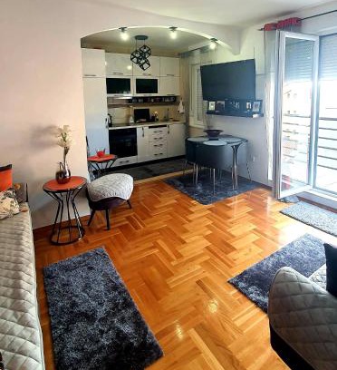 Apartman Nina is located in Budva, just a 14-minute walk from Slovenska Beach and 6 miles from Sveti Stefan. This apartment features air-conditioned accommodations with a balcony and free Wifi. St. Sava Church is 15 miles from the apartment and Tivat Clock Tower is 15 miles away. Featuring a terrace and sea views, the apartment includes 1 bedroom, a living room, cable TV, an equipped kitchen, and 1 bathroom with a hot tub and an a bath or shower. This apartment is non-smoking and soundproof. Kotor Clock Tower is 14 miles from the apartment, while Sea Gate – Main Entrance is 14 miles from the property. Tivat Airport is 11 miles away.