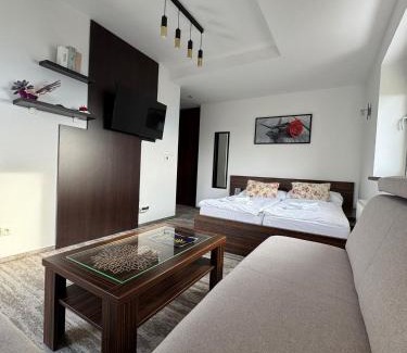 Featuring a garden, Apartman Panorama 1001 provides accommodations in Štrbské Pleso. This 4-star apartment offers a 24-hour front desk and an elevator. Private parking can be arranged at an extra charge. With free Wifi, this apartment features a satellite flat-screen TV, and a fully equipped kitchen with a microwave and fridge. Guests can take in the views of the mountain from the terrace, which also has outdoor furniture. This apartment is non-smoking and soundproof. Guests at the apartment can enjoy a buffet breakfast, and breakfast in the room is also available. There is an on-site restaurant, and bar. Ski equipment rental and bike rental are available at Apartman Panorama 1001, and the area is popular for skiing and cycling. Hiking is possible within the area and the accommodation offers ski storage space. Strbske Pleso is a 10-minute walk from Apartman Panorama 1001, while Treetop Walk is 24 miles from the property. Poprad-Tatry Airport is 16 miles away.