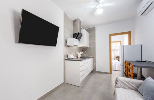 The holiday apartment 1 habitación is located in Fernán Pérez and impresses guests with its view of the mountain. The 30 m² property consists of a living room, a kitchen, 1 bedroom and 1 bathroom and can therefore accommodate 2 people. Additional amenities include Wi-Fi, a TV, air conditioning, a fan as well as a washing machine. A baby cot is also available.