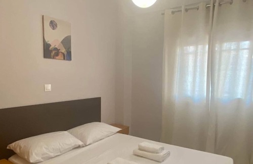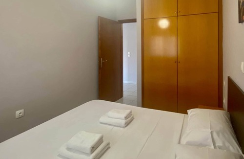 A one-bedroom apartment which can accommodate up to 3 guests, located on the first floor of a one-level building in the centre of Hanioti, Chalkidiki.