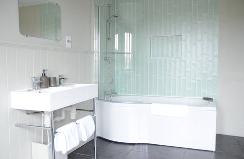 This apartment enjoys views over the countryside to the rear with nearby farms and is perfect for a couples or small families getaway to the Cotswolds. There is the living room just off the kitchen space with a dining table to one side. Just off the entrance hallway is the king size bedroom (can be twin upon request) with an en-suite bathroom with bath tub through the bedroom.