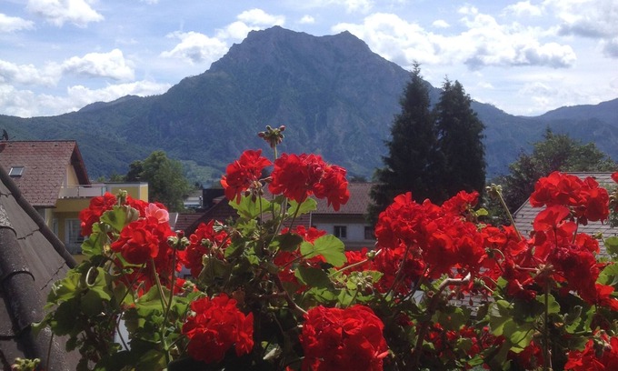 From the balcony you can see the Traunstein and mountains, the church and the lake are just a few minutes.