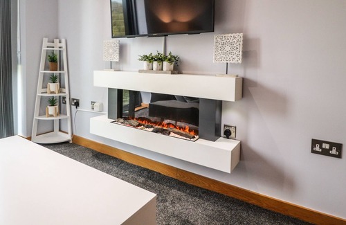 Amenities: Electric storage heaters with electric fire. Electric oven and hob, microwave, fridge/freezer, washing machine, dishwasher, coffee maker, hairdryer, x2 TV, WiFi. Fuel and power inc. in rent. Bed linen and towels inc. in rent. Highchair, cot and stairgate available. Off-road parking in on-site multi-storey car park available. Balcony with decking and furniture. Sorry, no pets and no smoking. Shop 0.6 miles, pub 0.4 miles. Note: Only babes in arms are accepted at this property, not children