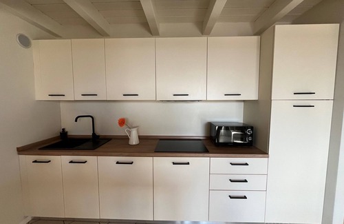 The accommodation consists of a double bedroom with partial lake and surrounding hill views, another twin room situated in a convenient loft, a spacious living room with an open kitchen, and a bathroom. The large panoramic terrace overlooks a charming small square, which occasionally hosts shows and events.