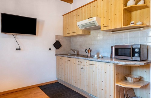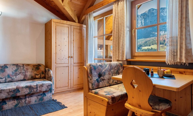 Overlooking the Alps, the holiday apartment 5 with step-free interior in Badia impresses guests with its fantastic views. The 31 m² property consists of a living room with a sofa bed for 2 people, a kitchen, 1 bedroom and 1 bathroom and can therefore accommodate 2 people. Additional amenities include high-speed Wi-Fi (suitable for video calls) as well as a TV. This vacation rental features a private balcony for your evening relaxation.