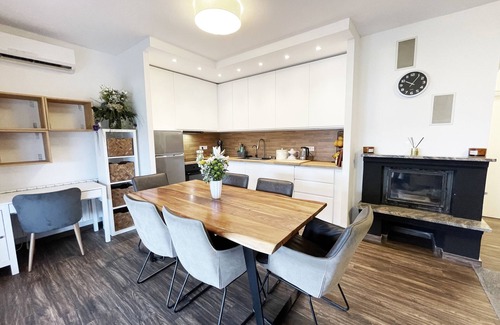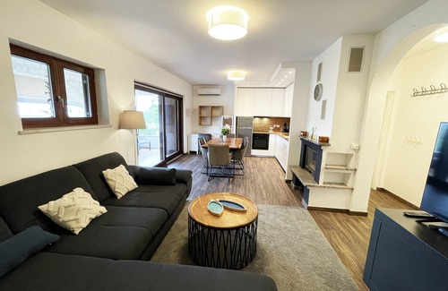 The apartments are located 100m from the sea promenade and 200m from the city center, facing west their terrace will allow you to admire the wonderful sunset over the bay and the island of Košljun.