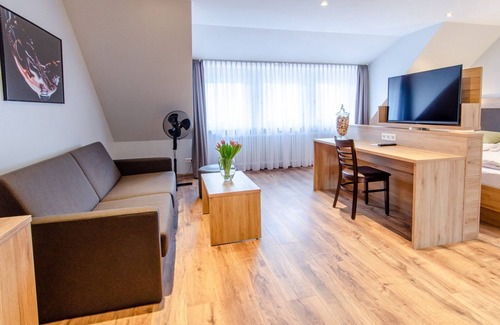 Just a few steps from the town center, yet very quiet and with a view of the nearby pine forest, is the newly opened restaurant & apartments "In Vino Veritas" in the resort town of Haslach im Kinzigtal.